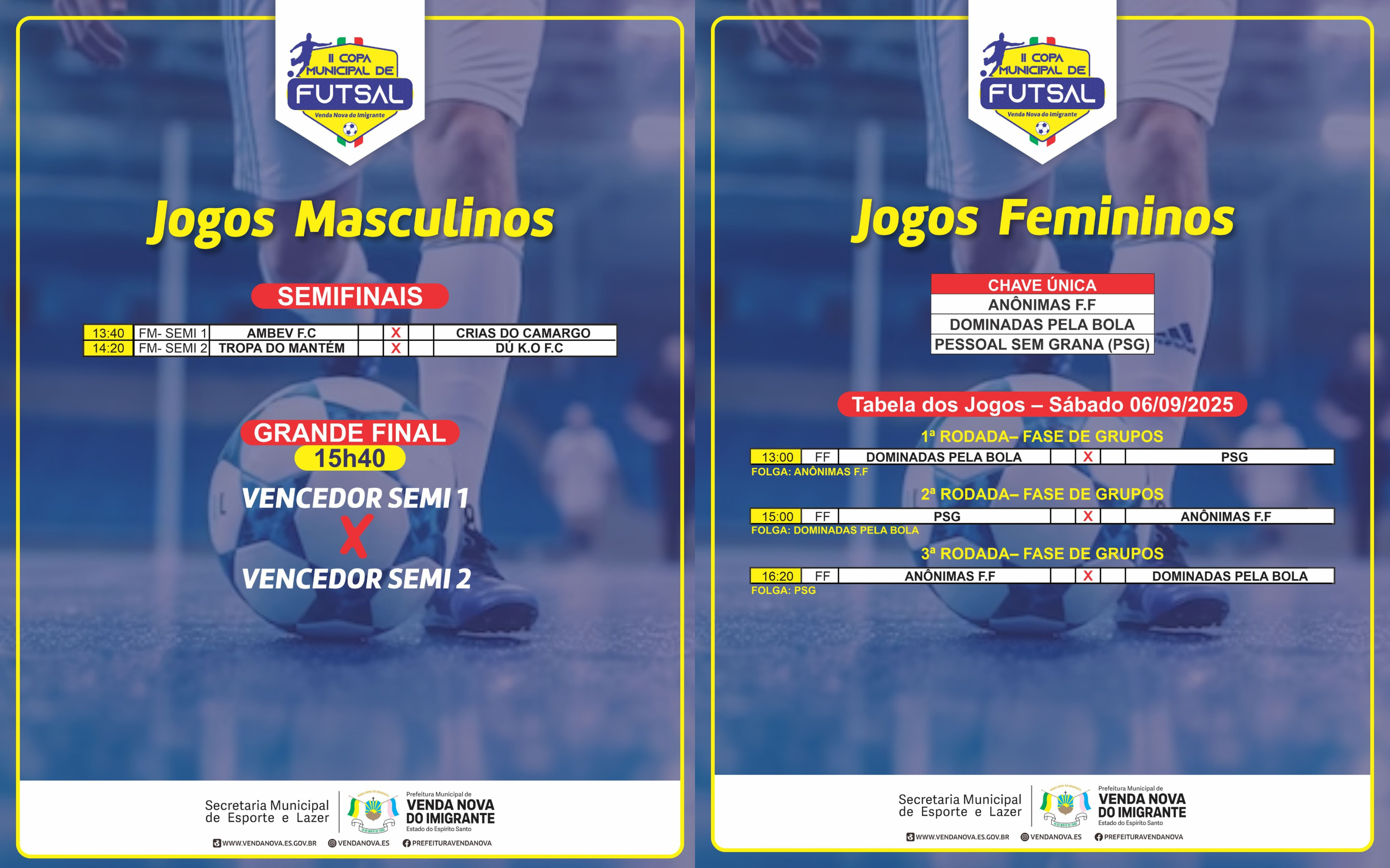 A II Copa Municipal de Futsal, promovida pela Prefeitura de Venda Nova do Imigrante por meio da Secretaria Municipal de Esporte e Lazer, teve início no último sábado (30), com as rodadas classificatórias da categoria masculina.