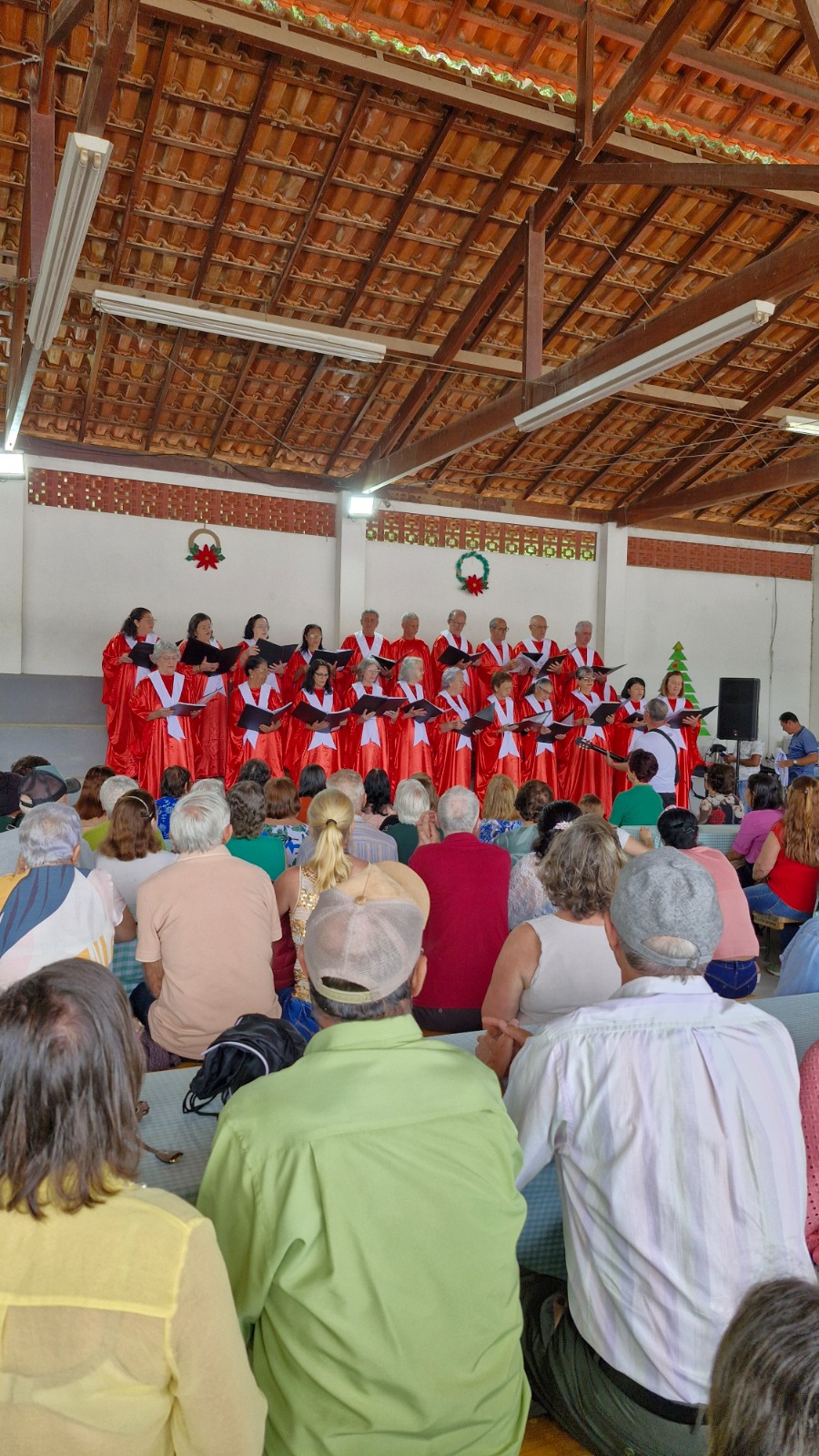 A programação teve início pela manhã com um momento da Palavra, seguido pela apresentação do Coral EnCantar do Conviver. O clima de Natal tomou conta do espaço com a presença do Papai Noel, além de um almoço coletivo, sobremesa e o tradicional bolo de Natal. Para encerrar o dia, os participantes aproveitaram o tão esperado forró com Preguinho, que animou o público até a tarde.