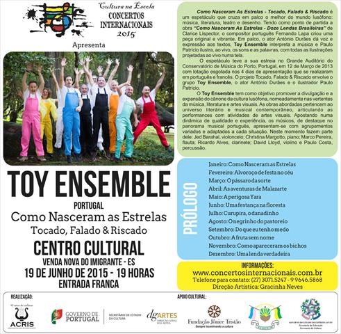 O grupo Toy Emsemble tem como objetivo promover a divulgação e a expansão da cultura portuguesa na música, literatura e artes visuais. As obras abordadas pertencem ao universo literário e musical contemporâneo, articulando as performances com atividades de artes visuais.