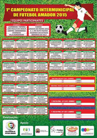 Começa neste domingo (09 de agosto) o 1º Campeonato Intermunicipal de Futebol Amador de Venda Nova do Imigrante, com dez equipes em duas chaves (Chave A e Chave B). Na Chave A estão as equipes Lavrinhas/Tapera, São Paulo do Aracê, Centro/Bananeiras, Vivendas e Vila Dordenoni. Na Chave B, as equipes Caxias, Unidos de Pedra Azul, São José do Alto Viçosa, Fazenda do Estado e Meninos da Vila.