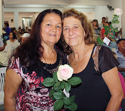 Dona Milza (esq.) fez questão levar falas de carinho aos idosos - Ascom/PMVNI