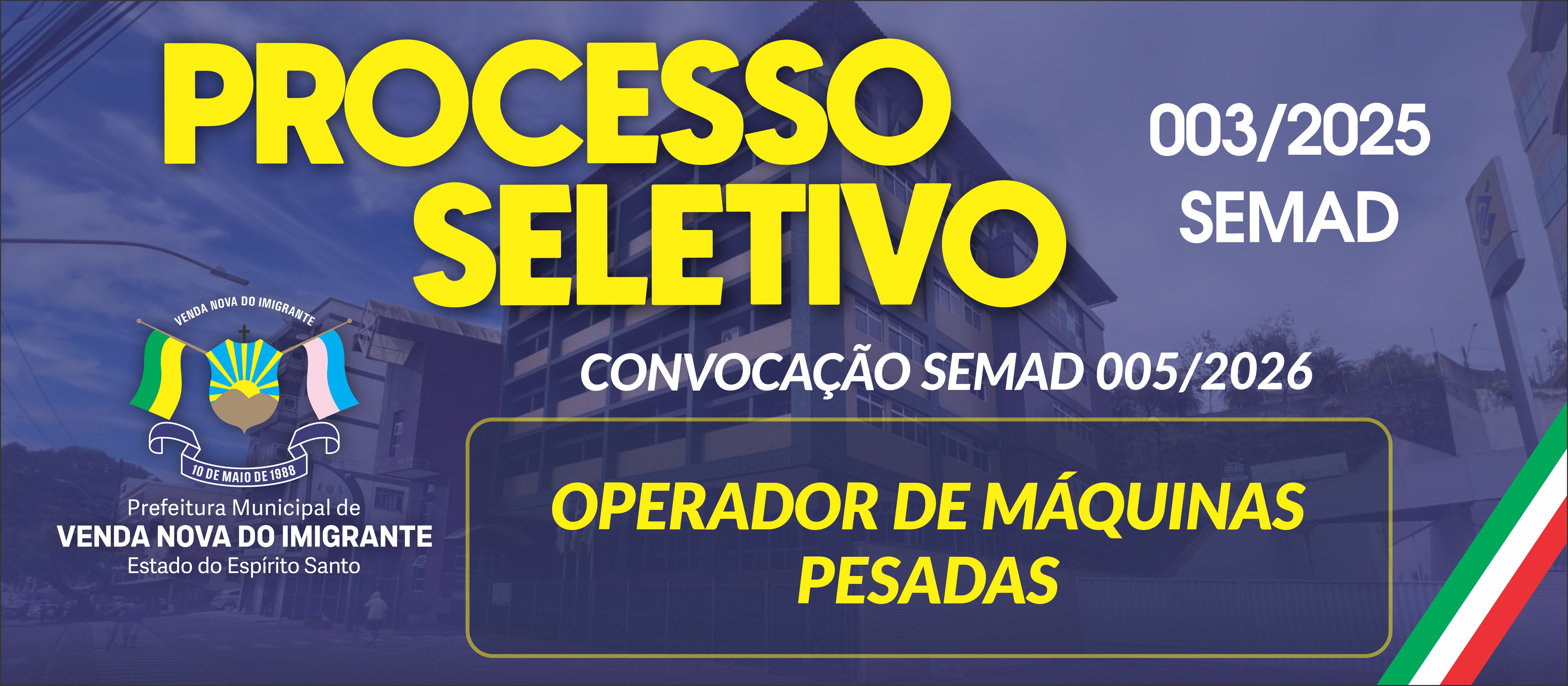 CONVOCAÇÃO SEMAD 005/2026 - OPERADOR DE MÁQUINAS PESADAS