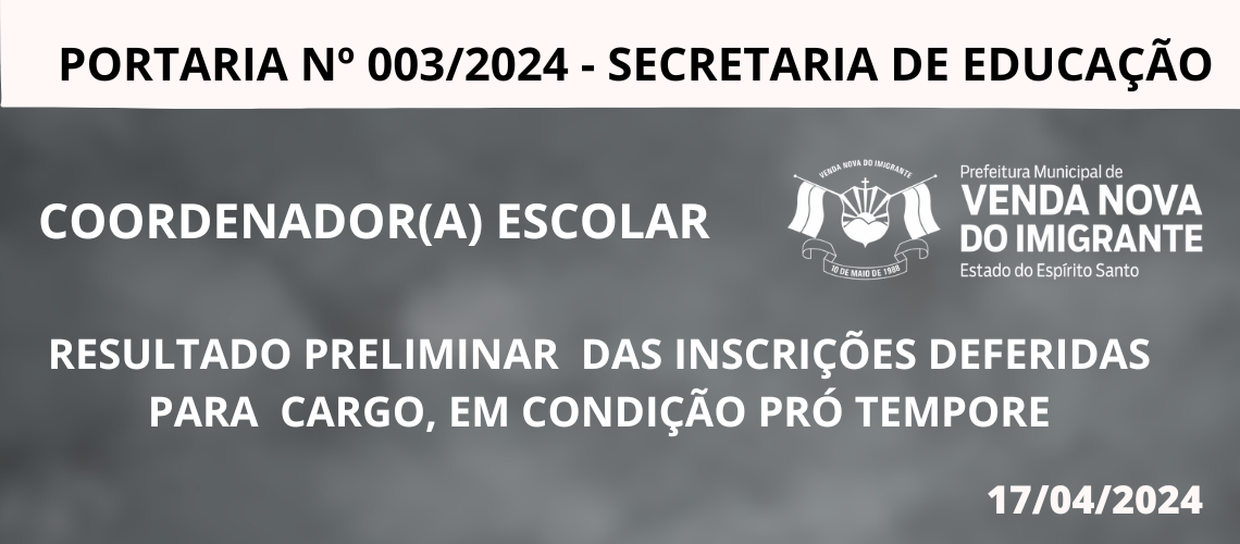 Divulgado resultado preliminar das inscrições para coordenador escolar