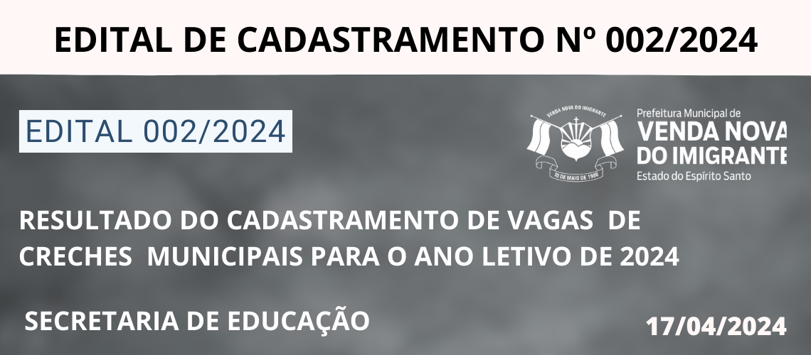 VAGAS DE CRECHE PARA O ANO LETIVO DE 2024