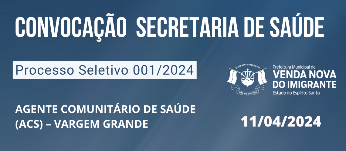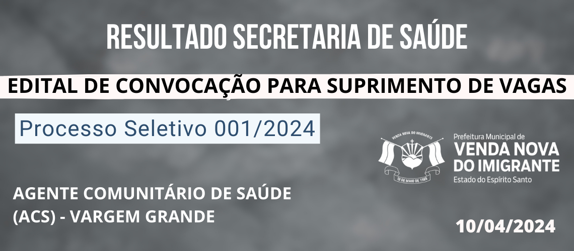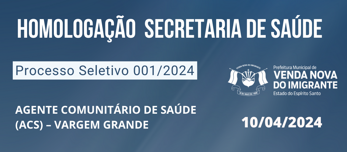 HOMOLOGAÇÃO - Agente Comunitário de Saúde para a localidade de Vargem Grande.