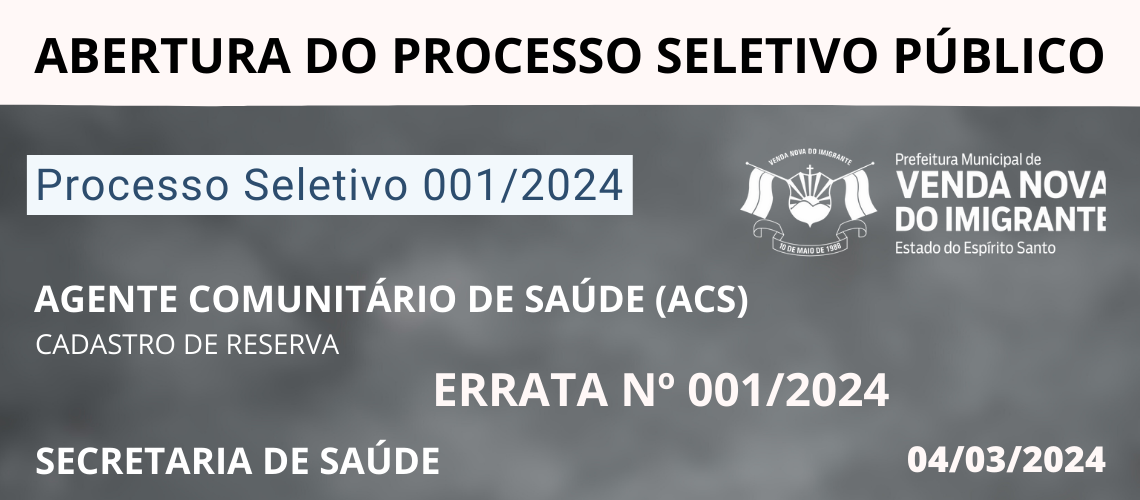 CONFIRA A ERRATA - CADASTRO DE RESERVA - AGENTE COMUNITÁRIO DE SAÚDE ( ACS)