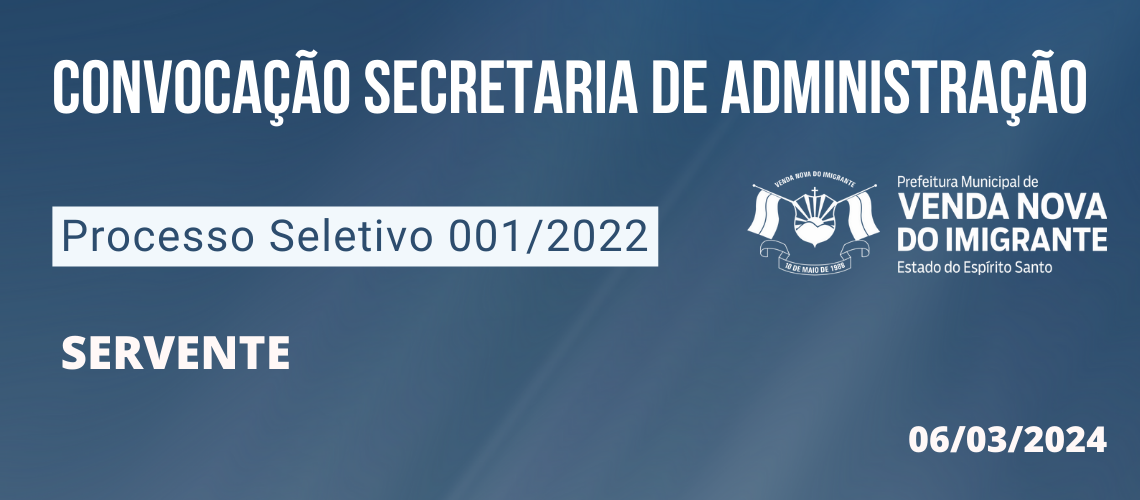 PROCESSO SELETIVO 001/2022: CONVOCAÇÃO SECRETARIA DE ADMINISTRAÇÃO