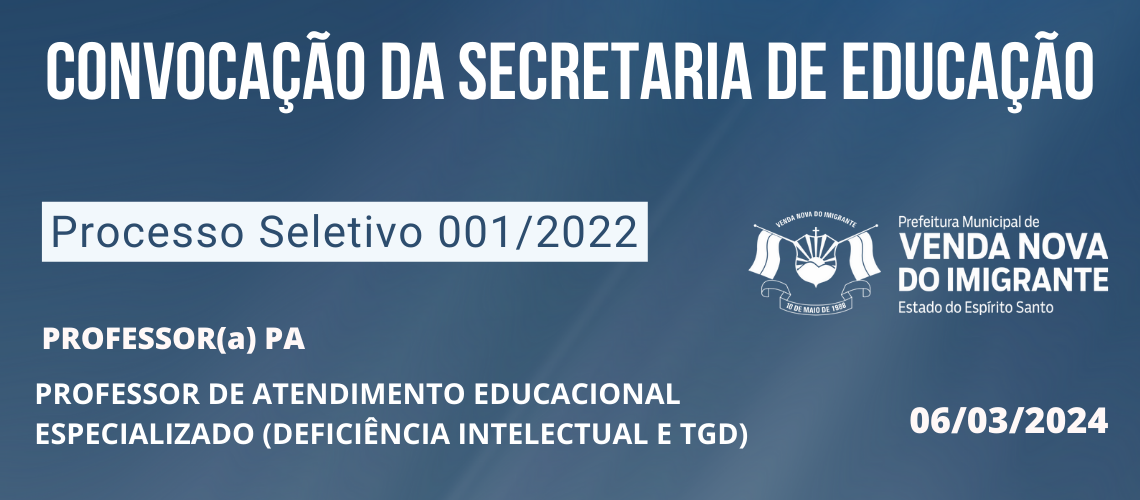 PROCESSO SELETIVO 001/2022: CONVOCAÇÃO DA SECRETARIA DE EDUCAÇÃO