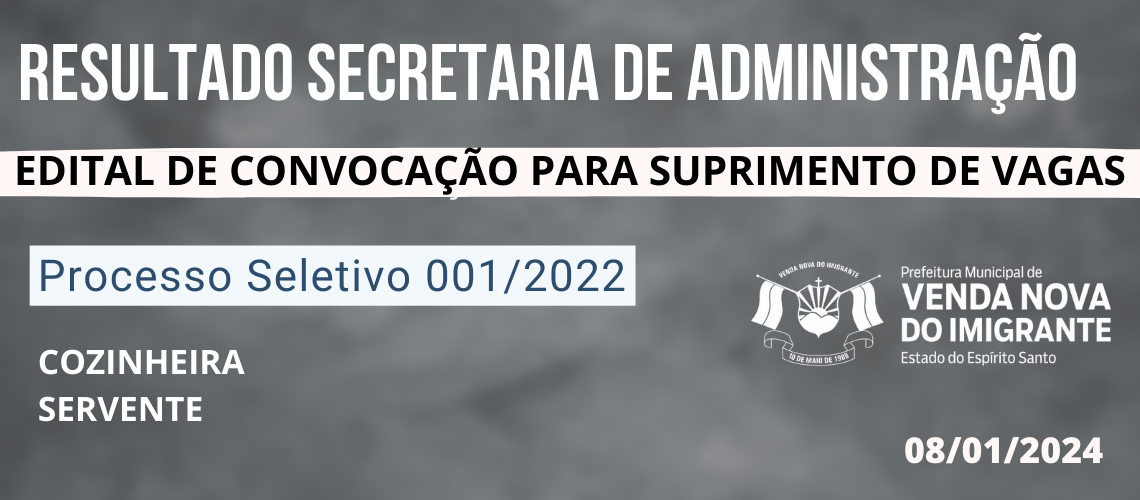 PROCESSO SELETIVO 001/2022: CONVOCAÇÃO DO RESULTADO DA SECRETARIA ADMINISTRAÇÃO
