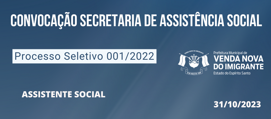 PROCESSO SELETIVO 001/2022: CONVOCAÇÃO DA SECRETARIA ASSISTÊNCIA SOCIAL