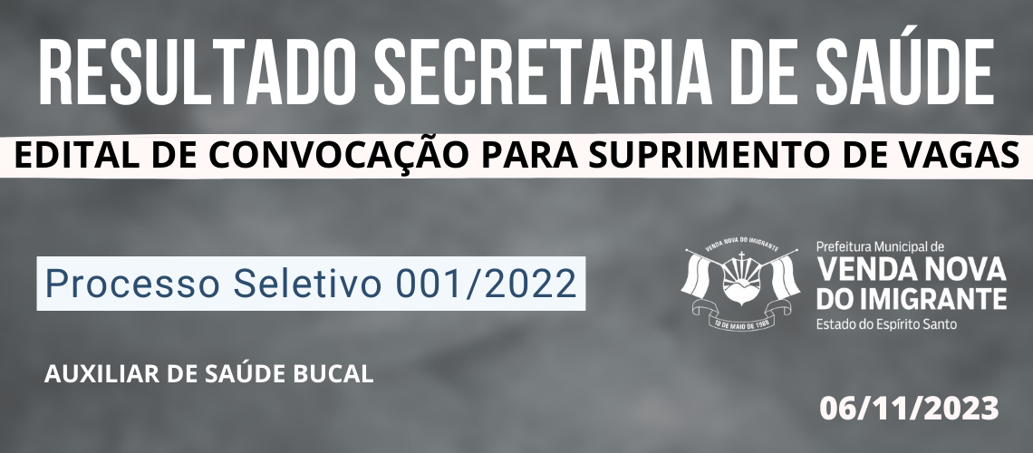 Cargo: Auxiliar de Saúde Bucal. Confira o resultado do Edital para suprimento de Vagas
