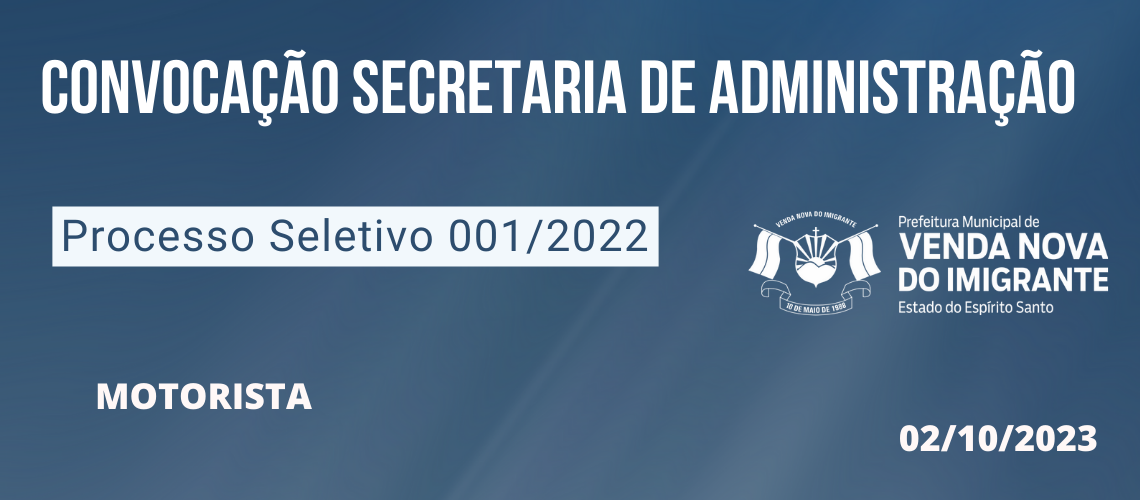 PROCESSO SELETIVO 001/2022: CONVOCAÇÃO DA SECRETARIA ADMINISTRAÇÃO