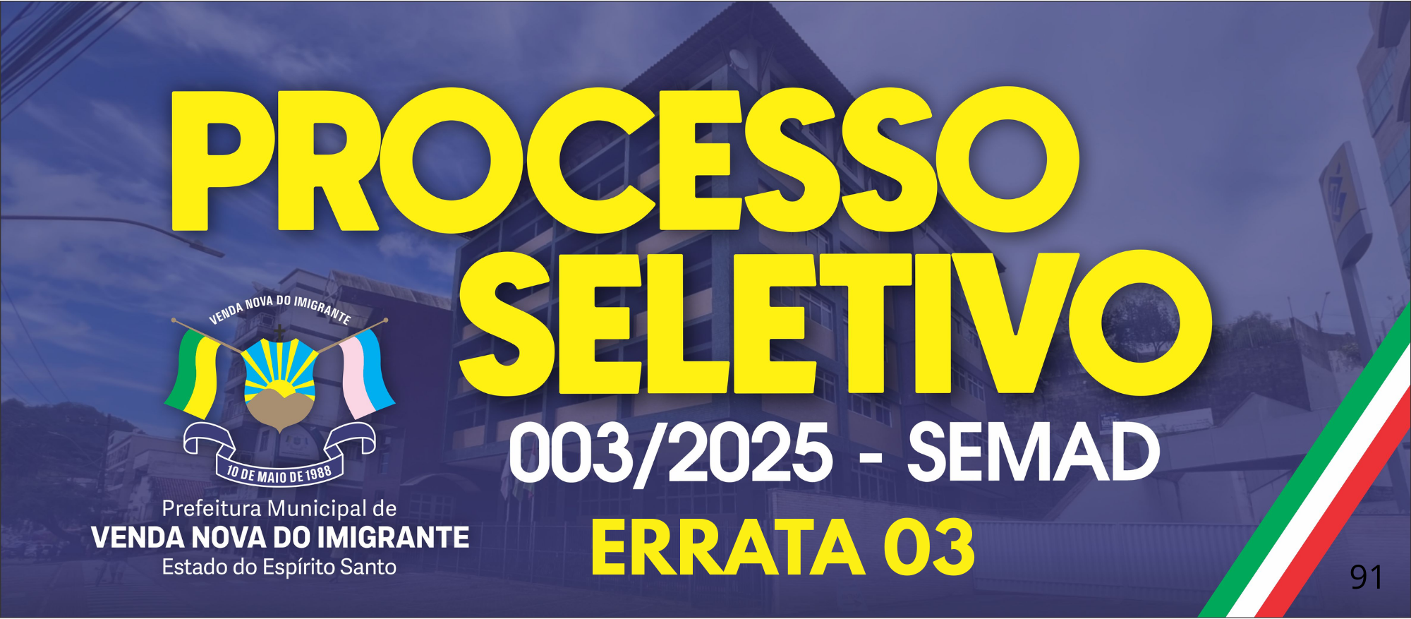A Secretaria Municipal de Administração torna público a Errata 03 do Processo Seletivo 003/2025 - SEMAD com as seguintes alterações: