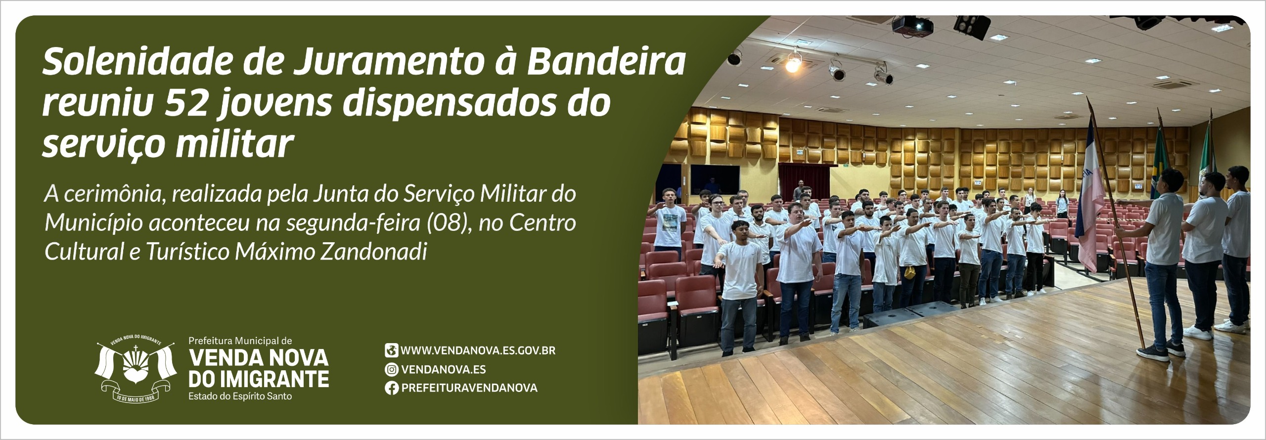 A cerimônia, realizada pela Junta do Serviço Militar do Município aconteceu nesta segunda-feira (08), no Centro Cultural e Turístico Máximo Zandonadi