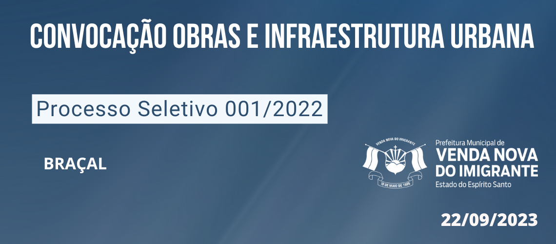 PROCESSO SELETIVO 001/2022: CONVOCAÇÃO DA SECRETARIA DE OBRAS E INFRAESTRUTURA URBANA