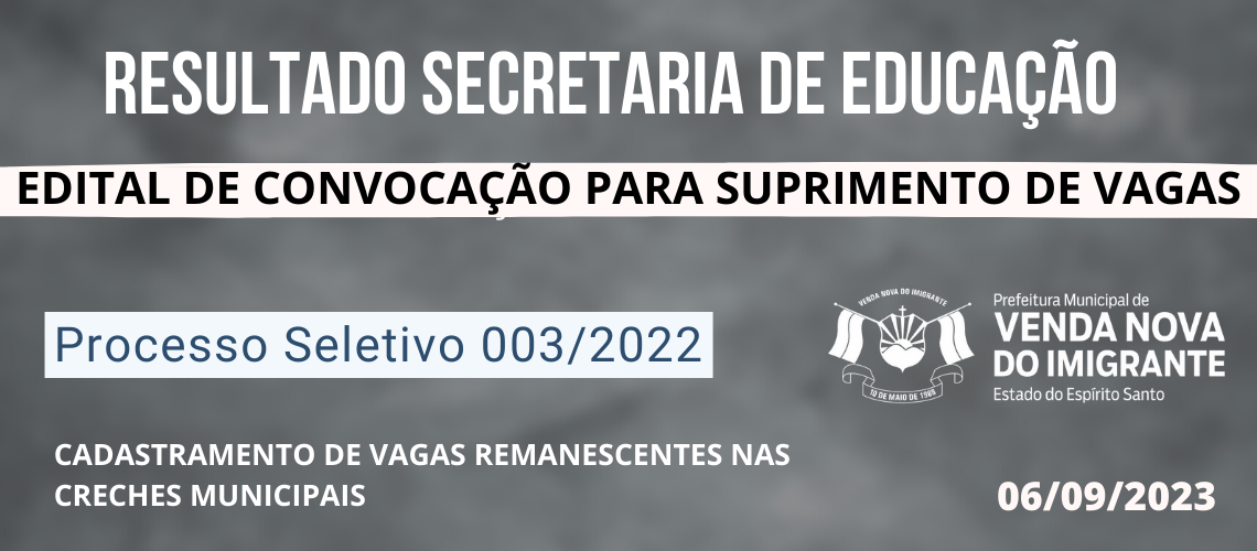 Resultado do Edital Nº 003/2023 para Cadastramento de Vagas Remanescentes nas Creches Municipais