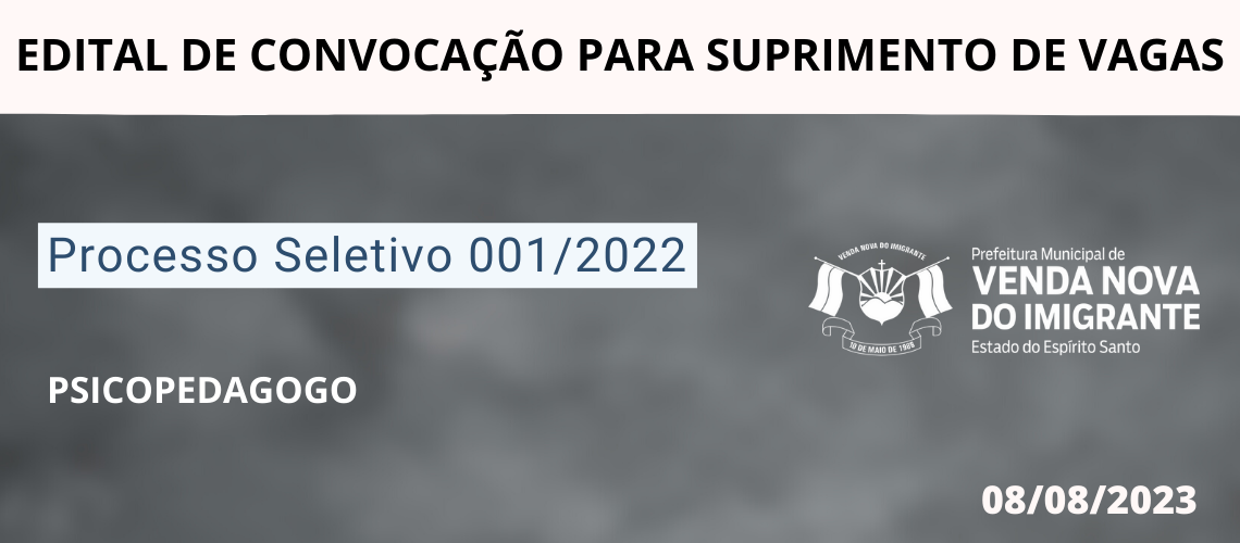 SUPRIMENTAÇÃO DE VAGA - PSICOPEDAGOGO - CONFIRA .