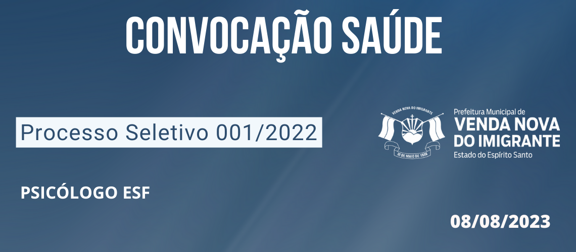 PROCESSO SELETIVO 001/2022: CONVOCAÇÃO SAÚDE