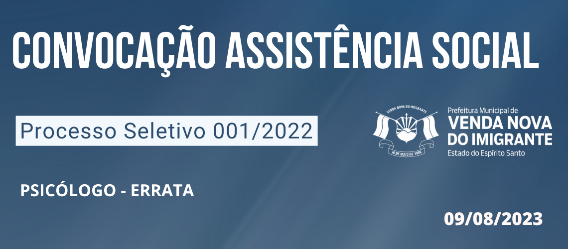 PROCESSO SELETIVO 001/2022: CONVOCAÇÃO ASSISTENCIA SOCIAL - ERRATA