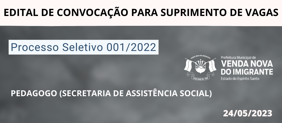 PROCESSO SELETIVO 001/2022: CONVOCAÇÃO SECRETARIA DE ASSISTÊNCIA SOCIAL