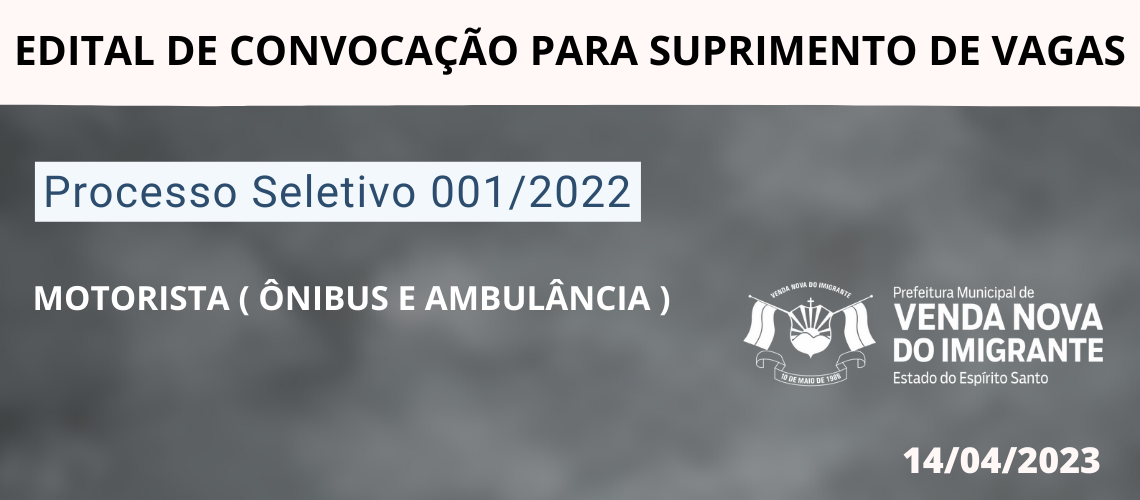 PROCESSO SELETIVO 001/2022: EDITAL DE SUPRIMENTO DE VAGA DE SAÚDE