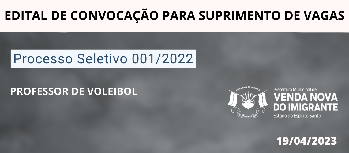 PROCESSO SELETIVO 001/2022: EDITAL DE SUPRIMENTO DE VAGA DE ESPORTE