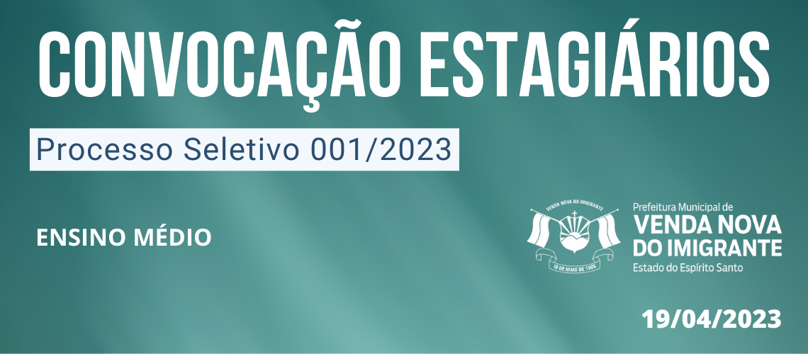 PROCESSO SELETIVO 001/2023: CONVOCAÇÃO DE ESTÁGIO DE ENSINO MÉDIO