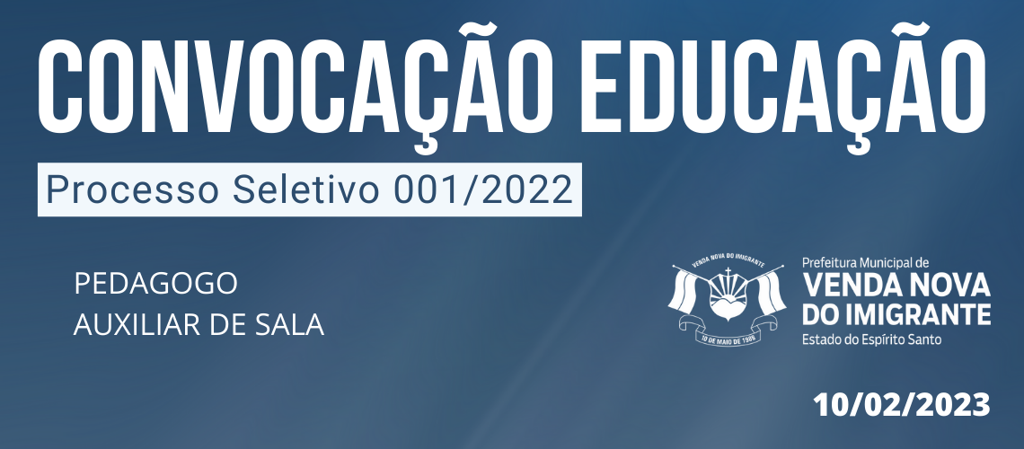 PROCESSO SELETIVO 001/2022: CONVOCAÇÃO EDUCAÇÃO