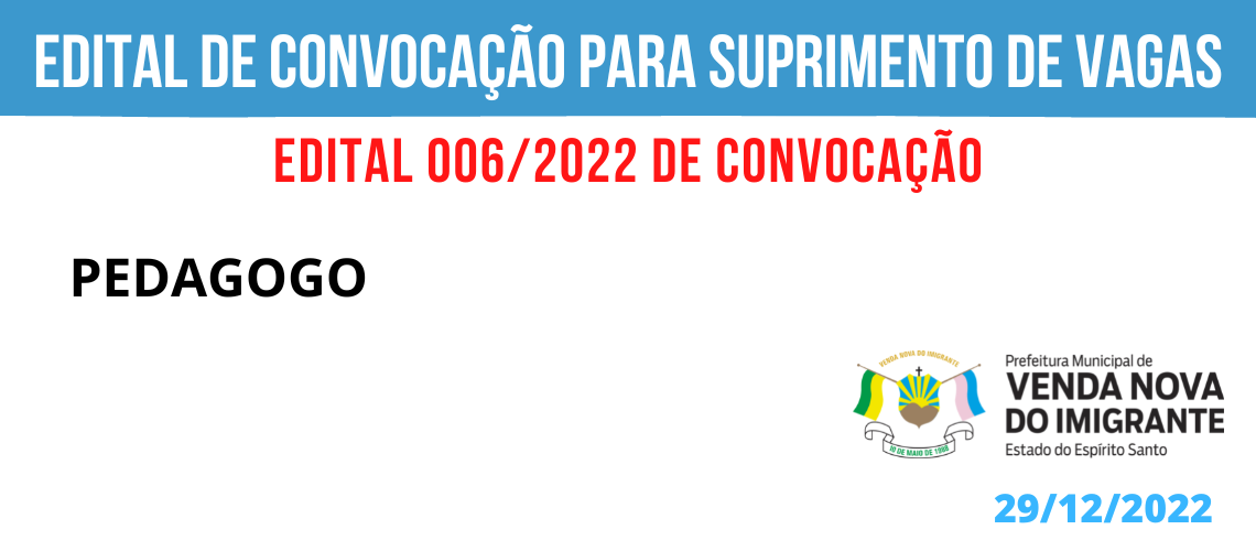 EDITAL DE CHAMAMENTO PÚBLICO PARA SUPRIMENTO DE VAGAS - 006/2022 (EDUCAÇÃO)