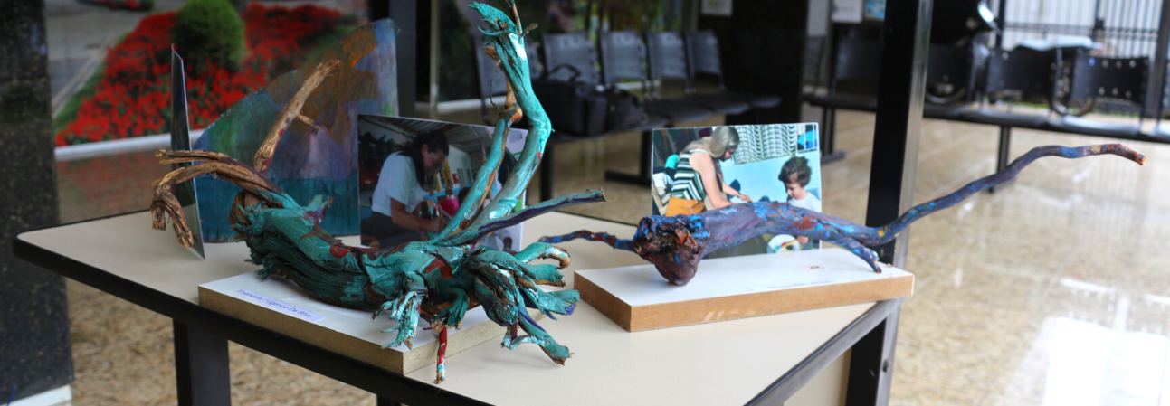 Exposição de obras de artes de estudantes da EMEI Vovó Helena Sossai, no térreo da Prefeitura de Venda Nova