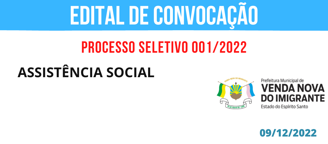 PROCESSO SELETIVO 001/2022: CONVOCAÇÃO ASSISTÊCIA SOCIAL