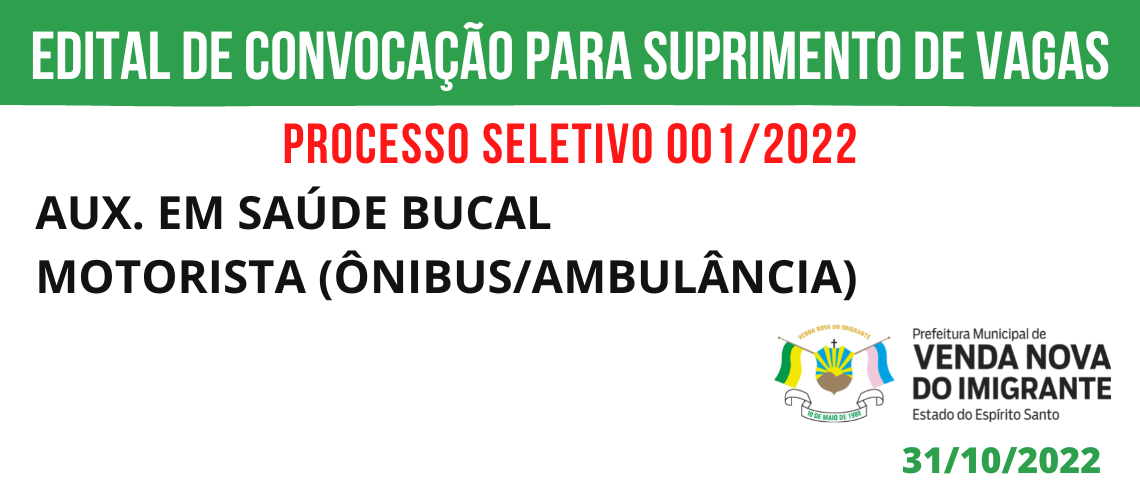 PROCESSO SELETIVO 001/2022: CONVOCAÇÃO SAÚDE