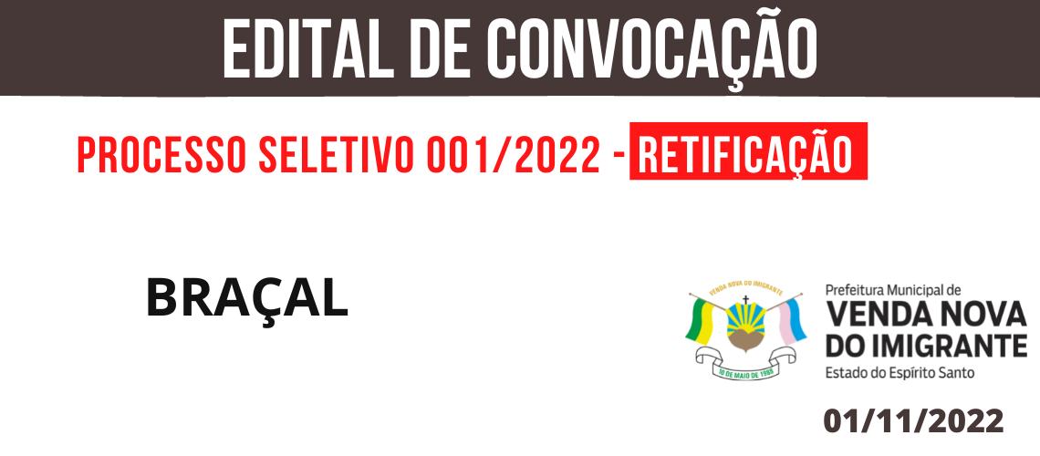 PROCESSO SELETIVO 001/2022: CONVOCAÇÃO OBRAS - RETIFICAÇÃO