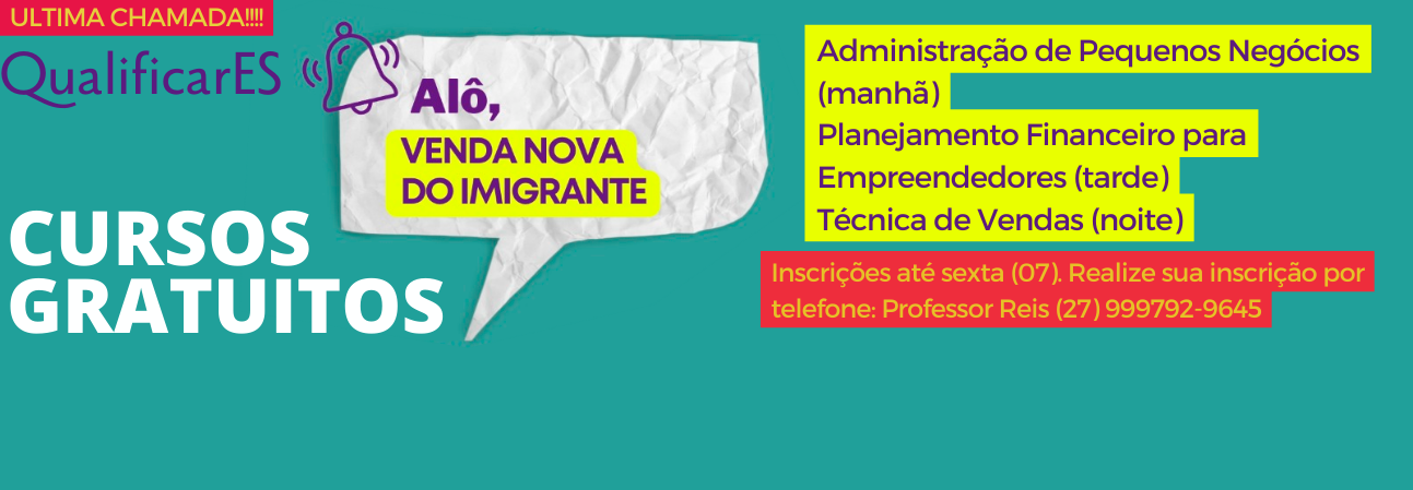 ÚLTIMA CHAMADA: QUALIFICAR ES COM CURSOS GRATUITOS EM VENDA NOVA DO IMIGRANTE