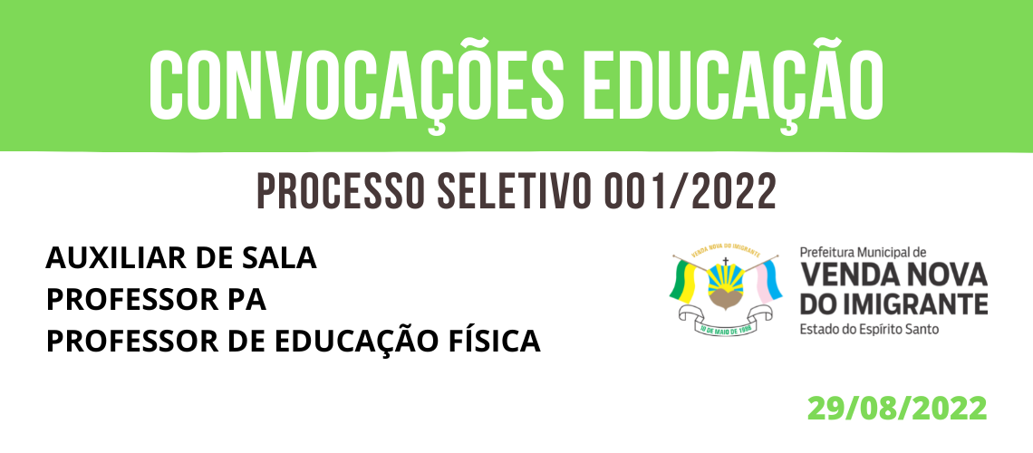 PROCESSO SELETIVO 001/2022: CONVOCAÇÃO EDUCAÇÃO