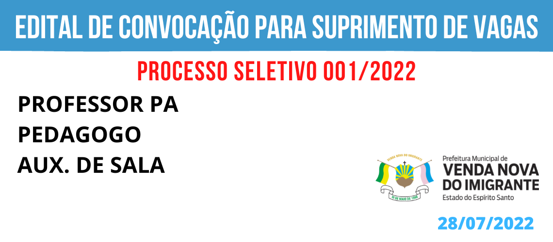 PROCESSO SELETIVO 001/2022: CONVOCAÇÃO EDUCAÇÃO