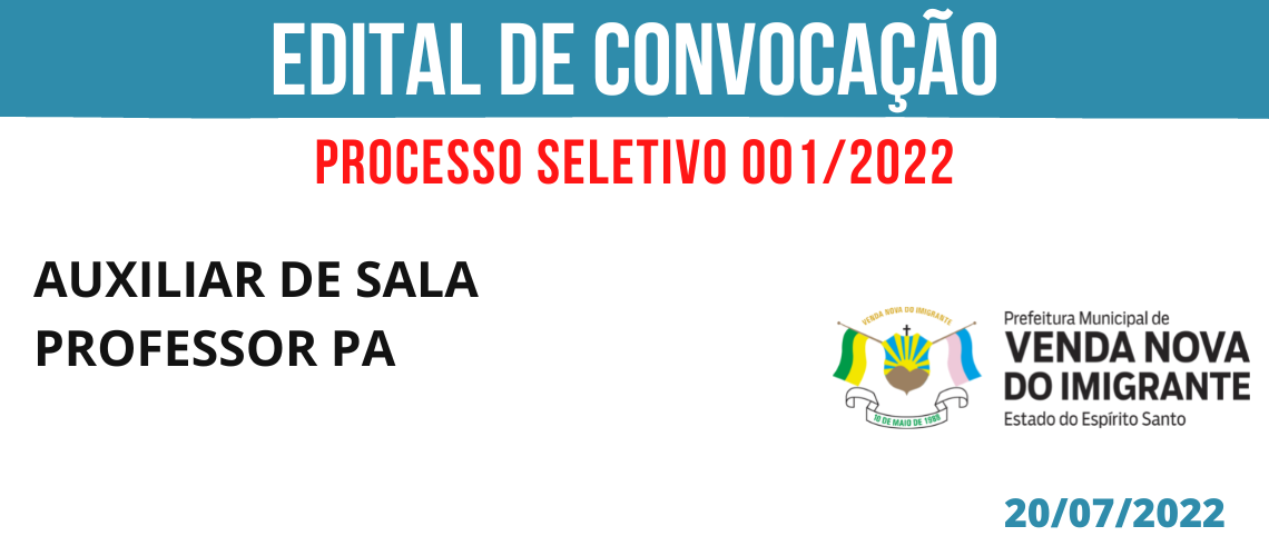 PROCESSO SELETIVO 001/2022: CONVOCAÇÃO EDUCAÇÃO