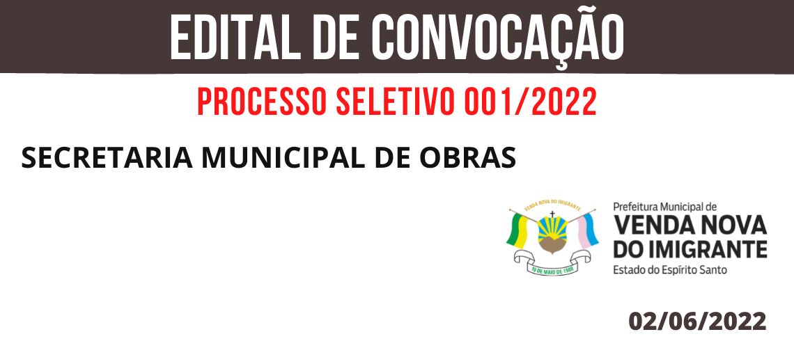 PROCESSO SELETIVO 001/2022: CONVOCAÇÃO OBRAS