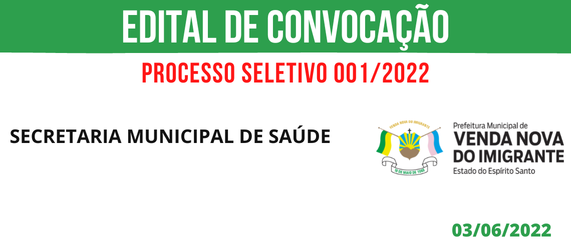 PROCESSO SELETIVO 001/2022: CONVOCAÇÃO SAÚDE