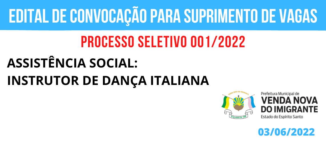 PROCESSO SELETIVO 001/2022: CONVOCAÇÃO PARA SUPRIMENTO DE VAGAS - ASSISTÊCIA SOCIAL