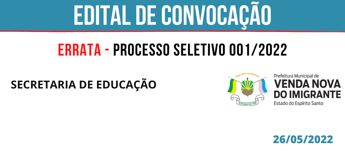 PROCESSO SELETIVO 001/2022: CONVOCAÇÃO EDUCAÇÃO (ERRATA)