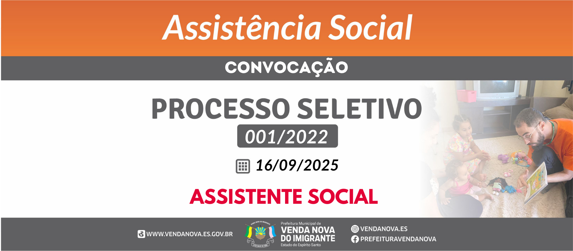 A PREFEITURA MUNICIPAL DE VENDA NOVA DO IMIGRANTE, por intermédio da Secretaria Municipal de Assistência Social, Trabalho e Direitos Humanos, usando de suas atribuições legais para a contratação temporária de PROFISSIONAIS DE EXCEPCIONAL INTERESSE PÚBLICO, considerando o disposto no Edital Processo Seletivo Público nº 001/2022, com resultado devidamente publicado.