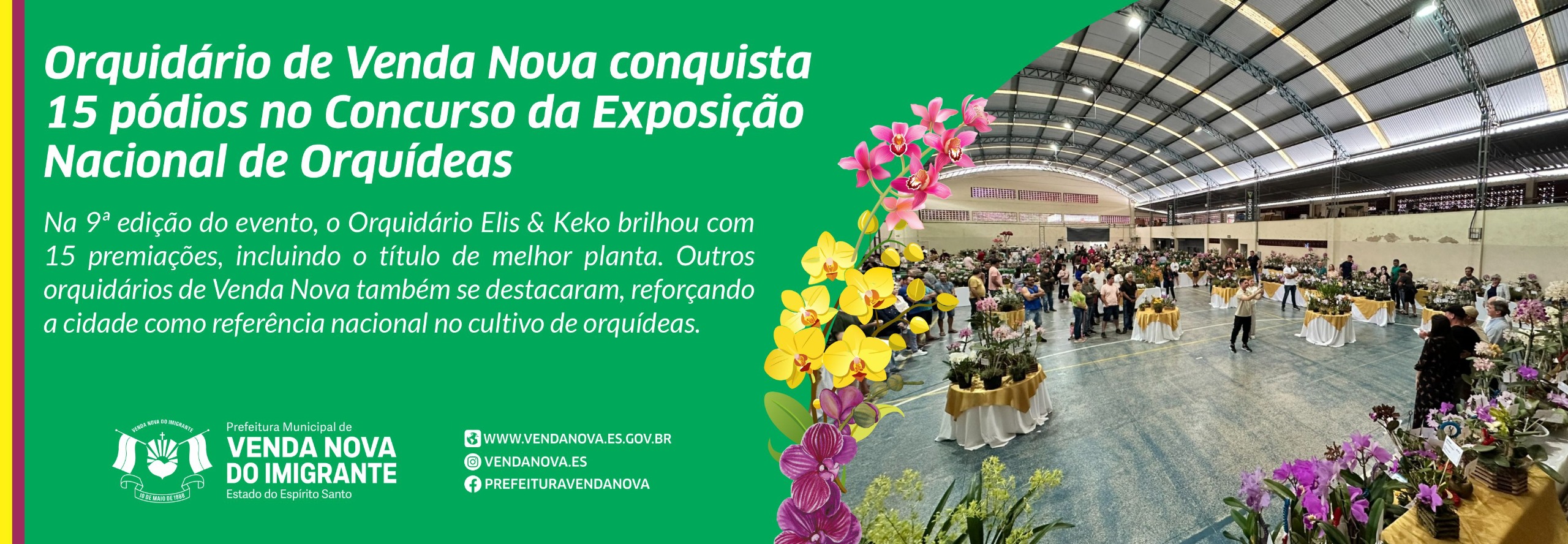 Na 9ª edição do evento, o Orquidário Elis & Keko brilhou com 15 premiações, incluindo o título de melhor planta. Outros orquidários de Venda Nova também se destacaram, reforçando a cidade como referência nacional no cultivo de orquídeas.