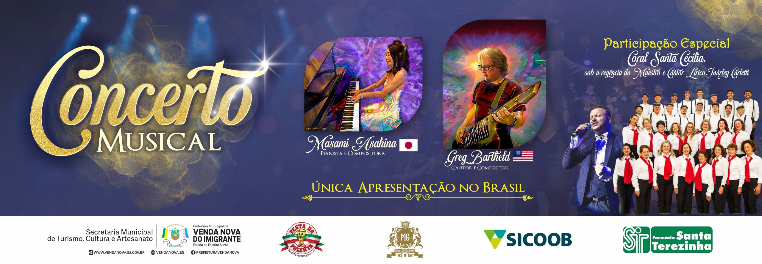 Venda Nova recebe apresentação internacional com Masami Asahina e Greg Bartheld com participação do Coral Santa Cecília e do Maestro Inárley Carletti