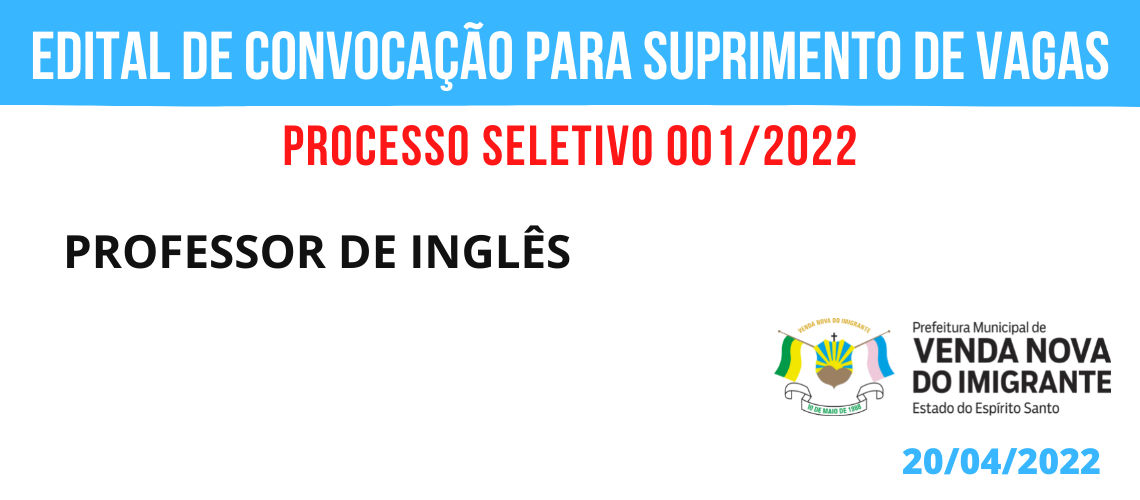 PROCESSO SELETIVO 001/2022: CONVOCAÇÃO PARA SUPRIMENTO DE VAGAS - EDUCAÇÃO