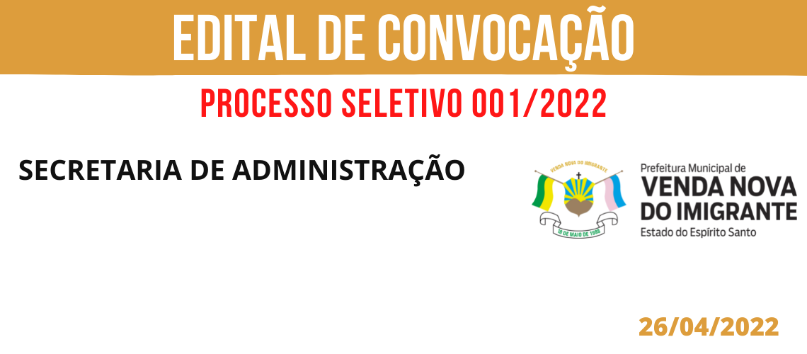 PROCESSO SELETIVO 001/2022: CONVOCAÇÃO ADMINISTRAÇÃO