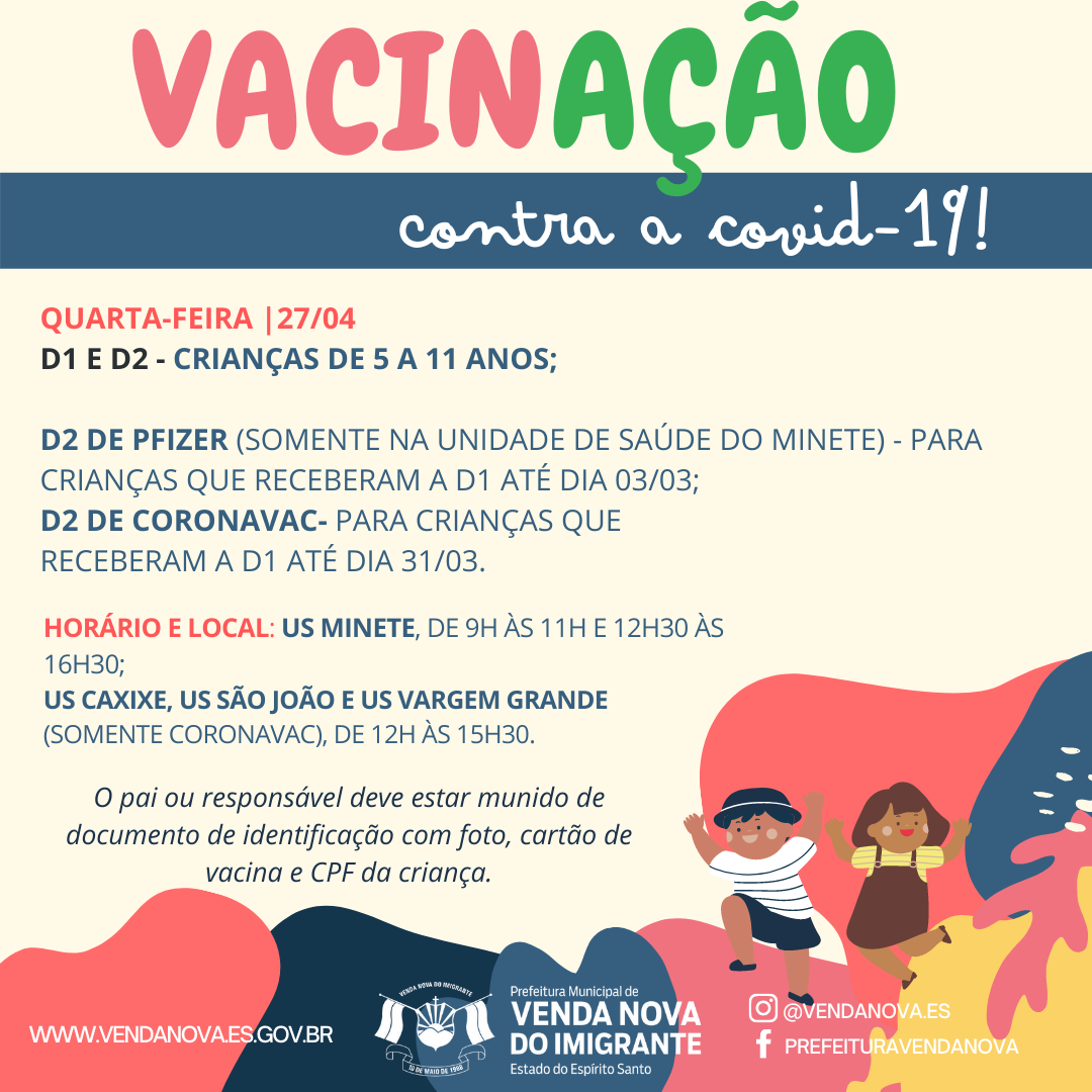 COVID-19: VACINAÇÃO INFANTIL NESTA QUARTA-FEIRA (27)