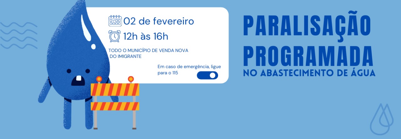 PARALISAÇÃO NO ABASTECIMENTO DE ÁGUA NESTA QUARTA-FEIRA (02)
