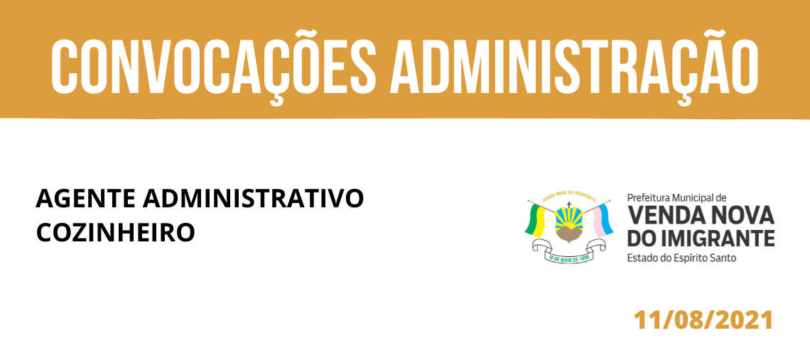 SECRETARIA DE ADMINISTRAÇÃO CONVOCA AGENTE ADMINISTRATIVO E COZINHEIRO