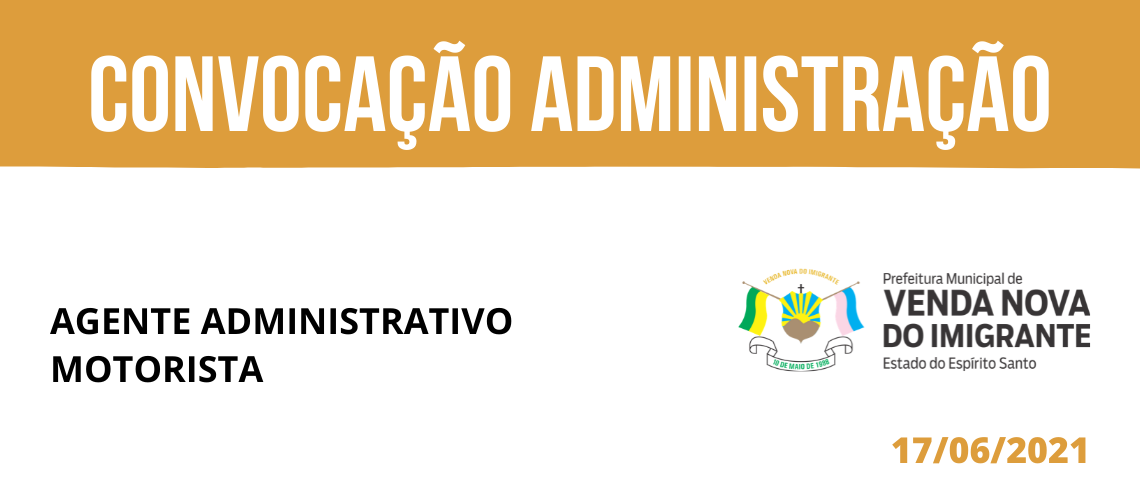 SECRETARIA DE ADMINISTRAÇÃO CONVOCA AGENTE ADMINISTRATIVO E MOTORISTA